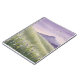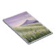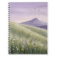 A gentle hillside covered in wildflowers at twilight, with soft lavender skies and a flock of birds flying across the horizon. A distant mountain is bathed in the last light of the day, creating a calming and peaceful notebook cover for journalling and self-reflection.