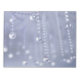 A 3D macro shot of a crystal chandelier. Myriads of strands of sparkling glass beads catch the light to create a lovely bokeh in the background. The blurred glass drops are reflected clearly in the sharply focused crystal balls in the foreground. The silver branches of the candelabra and soft blue atmosphere and lights give an early evening glow to the piece. Created in Vue.