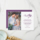 Twilight Lavender Floral Wreath Photo Wedding Couple Thank You Card.