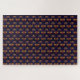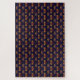 The product features a repeating ornate pattern inspired by a classic, baroque-style design. The central motif resembles a stylised fleur-de-lis or an elegant plume, rendered in vibrant gold, red, and orange hues with gradient effects. The background is a deep navy blue, creating a rich contrast that makes the design elements pop. The pattern has a luxurious and regal feel, with symmetrical detailing and flowing curves that give it a sophisticated and timeless appearance.