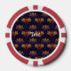 The product features a repeating ornate pattern inspired by a classic, baroque-style design. The central motif resembles a stylised fleur-de-lis or an elegant plume, rendered in vibrant gold, red, and orange hues with gradient effects. The background is a deep navy blue, creating a rich contrast that makes the design elements pop. The pattern has a luxurious and regal feel, with symmetrical detailing and flowing curves that give it a sophisticated and timeless appearance.