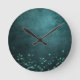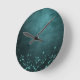 Twilight Teal | Deep Green Aqua Neon Glow Stars Round Clock