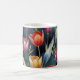 Bold, romantic, and bursting with colour—this coffee mug captures a moonlit field of tulips in full bloom. The dark background sets off the radiant reds, purples, and peaches, adding drama and sophistication to your daily cup of coffee or tea.