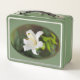 This is a standard metal lunchbox that appears to work just fine. We designed this box ourselves with an uploaded photo and custom text on the front and back. It looks absolutely beautiful except the front of the lunchbox is not centered like it shows in the photo. The print borders don't align with the inset flat part of the box where the preview photo online showed it perfectly centered in there. The back looks nice and centered though.