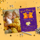 This adorable birthday photo invitation features a heartwarming design, with two orange kittens on the right whose tails form a heart shape. On the left, there's an adorable photo of the celebrated kids. Perfect for twin brothers, friends celebrating a joint party, or even cat lovers! The vibrant purple background with playful orange confetti-like dots adds to the fun, and it’s also repeated on the back of the invitation. The text is written in a playful white and orange modern script, paired with clean, classical typography. Both the text and photo are customisable to make it uniquely yours. (Photo ©Anna Shvets)