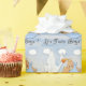 This cute Twin Blonde Boys - Stork Baby Shower Wrapping Paper features a blue and white gradient background, clouds and a stork carrying twin baby boys. The baby boys have blonde hair and pacifiers in a blue blanket with white polka dots. Stylised text is It's Twin Boys. Perfect for wrapping Baby Shower Gifts. Choose your media and size of wrapping paper.
