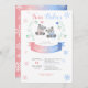 Twin boy and girl winter baby shower invitation. Design features two cute illustrated bears with baby pink and blue scarf along with pink snowflakes and winter florals.