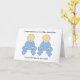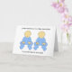 Twin baby boys dressed in blue outfits and the words 'Congratulations on your baby naming day to two very special little boys'.