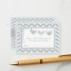 Grey and white chevron print with baby blue accents with diapers on clothesline and a 3D-look polka-dot bow diaper raffle ticket design for a baby shower.