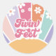 Twin Fest Retro Sunshine Rainbow Daisy Classic Round Sticker