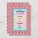 For a set of girl twins this cutest invitation features a pretty Pink background with yummy sweets, like doughnuts and cookies. In the centre is a sparkly background, and on the back as well, with a pturquoise frame and all the party details.