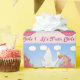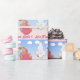 This cute Twin Girls Blonde - Stork Baby Shower Wrapping Paper features a blue and pink gradient background, clouds and a stork carrying twin baby girls. The baby girls have blonde hair and pacifiers in a pink blanket with white polka dots. Stylised text is It's Twin Girls. Perfect for wrapping Baby Shower Gifts. Choose your media and size of wrapping paper.