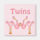 Unique Baby Shower Gifts for the New Mum or Mum to be. Baby Onsies, invitations,post cards, keyrings, magnets, button party favours, keepsake mugs and more. Each Item can be personalised with names and dates. This design is for a twin girls and has pink storks.
