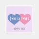 This adorable napkin features adjoining hearts in blue and pink with template text for the date of a special occasion. The design is perfect for a twin baby shower, baptism, or birthday party. The dual heart image is also appropriate for an engagement party, wedding, bridal shower, or anniversary celebration.