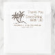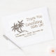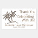 This simple but elegant wedding thank you stickers features two brown palm trees with the Bride & Groom's first names and the wedding date beneath. Along side the trees are the words "thank you for celebrating with us". This could be used for wedding party favours and/or thank you gift tags. Perfect for tropical, seaside, ocean or beach weddings.