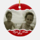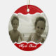 Customise this ornament with two photo and your own text. Add a date, location, names and more. Great for family photos, "save the dates", anniversaries and 1st Christmas.