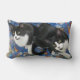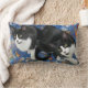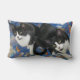 A pair of little black and white tuxedo kittens look adorable on this throw pillow . This photo taken by Kelley Sweet and used with her permission.