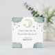 A baby shower invitation featuring an illustration of a moon, clouds, rain and stars. The text can be customised to suit your needs.