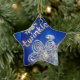 A white and silver angels rests against an indigo blue nighttime sky. A star appears to the left under the word "twinkle". Glitter on the painting gives this angel painting the magic of a shimmering twinkle. This is a great angel image to use for the holidays like Christmas or New Year's. You can personalise this angel art painting ornament pendant with your own text and images using the "Customise It" option. Make personal guardian angel gifts!