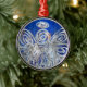A white and silver angels rests against an indigo blue nighttime sky. A star appears to the left under the word "twinkle". Glitter on the painting gives this angel painting the magic of a shimmering twinkle. This is a great angel image to use for the holidays like Christmas or New Year's. You can personalise this angel art painting ornament pendant with your own text and images using the "Customise It" option. Make personal guardian angel gifts!