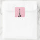 An elegant Eiffel Tower covered in twinkle lights decorates this pink sticker.