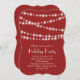 Multiple strands of twinkle lights accent this holiday party invitation on a cranberry red background.