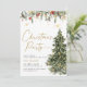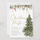 Rustic Twinkle Lights Green Gold Tree Christmas Party Holiday Invitation