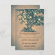 Beautiful rustic country wedding RSVP card with old oak tree and love heart initials.