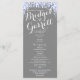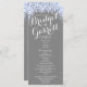 Twinkle lights cornflower blue and grey design printed rack card wedding programs with white text.