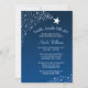A cute Twinkle Twinkle Little Star themed baby shower invitation. Shown in shades of dark blue, light blue and white.