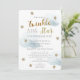 This cute gender neutral "twinkle twinkle little star" baby shower by mail invitation features white background with a faux gold glitter stars and fluffy clouds. The reverse side features faux gold glitter star patterns. Change the background colour and personalise for your needs. You can find more matching products at my store.