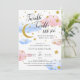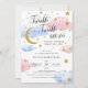 The Twinkle Twinkle Little Star Gender Reveal Party Invitation is a masterpiece of artistic design. The use of delicate watercolors creates a dreamy and ethereal atmosphere that perfectly captures the anticipation and excitement of a gender reveal party. The invitation features a gorgeous celestial scene, with twinkling stars, a crescent moon and clouds. The stars appear to dance and twinkle, creating a magical effect that draws the eye and captures the imagination. The colour palette is soft and gentle, with muted shades of pink and blue. This subtle use of colour hints at the gender reveal while maintaining an air of mystery and anticipation. For more advanced customisation of this design, simply select the "Customise It" button above! Matching items are available.