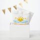 Celebrate a joyful moment with this adorable little sunshine baby shower design featuring a smiling sun, soft blue clouds, and golden stars. The bright yellow and sky blue palette creates a warm and cheerful atmosphere, perfect for a sunshine themed baby shower. This playful illustration adds a sweet and welcoming touch to your celebration and pairs beautifully with coordinated party decorations.