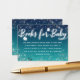 Dreamy twinkle twinkle little star theme baby shower bring a book insert card featuring hand lettered script that says "books for baby" on a blue and teal ombre night sky background with faux silver glitter and white glowing stars. The card asks guests to bring a children's book instead of a card.