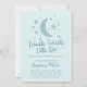 Sweet baby shower invitation for your star theme party. There is a shape of moon and stars in mint faux foil. The text says "Twinkle Twinkle Little Star what a little miracle you are!" and the baby shower information follows. The texts are easily customisable online.