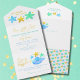 A "Twinkle Twinkle Little Star" baby shower or gender reveal party invitation! Perfect for celebrating the upcoming arrival of your little one, this invitation features a cute starry design with a gender neutral colour palette that's sure to enchant your guests.