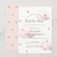 This cute "twinkle twinkle little star" 1st birthday invitation features white background with faux gold glitter stars and fluffy pink clouds. The reverse side features faux gold glitter star patterns on blush pink background. Change the background colour and personalise for your needs. You can find more matching products at my store.