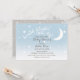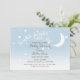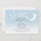 Simple yet adorable baby shower invitation features " twinkle twinkle little star " quote, white moon and stars on a two tone background.