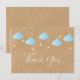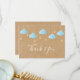 Twinkle twinkle little star thank you card, featuring white script thank you text with cute baby blue clouds and golden stars on strings, on a rustic kraft boho background. You can personalise with your own thank you message on the reverse, a perfect way to say thank you! Designed by Thisisnotme©