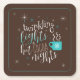 A modern Christmas paper coaster design with a steaming mug of hot chocolate and a line from my original poem that reads 'twinkling lights and hot cocoa nights'. The trendy text design in turquoise, cocoa and white is highlighted by stars on a chocolate brown background. Search ID593 to see all the coordinating products for this mix n' match design set.