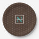 This beautiful Christmas paper plate features a simple repeating pattern of a star shaped twinkling light and square central label on a chocolate brown background to hold your name and monogram. The modern colour palette makes a popular choice for Christmas gifting. Search ID594 to see all the coordinating products for this mix n' match design set.