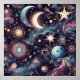 A surreal cosmic scene with golden stardust, glowing celestial bodies, and intricate interstellar patterns. The swirling elements evoke a sense of movement and fantasy. Ideal for space lovers and dreamers alike.