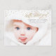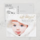 Twinkly gold stars fall all around a sweet baby (customise with your own newborn photo) with "hello, sweet girl" in fancy gold glitter effect script (note no actual gold glitter or leaf will be printed on the paper - it will just print to look like gold glitter). This birth announcement postcard is simple, chic and sweet, with the script adding an elegant flair. Use a picture of baby on a soft white background, so the text will be readable and the stars will stand out. Optionally, don't forget to check the back, where you can upload another photo of baby in a fun taped-up polaroid frame and add a personal heartwarming message to the postcard!