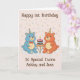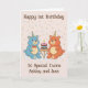 Celebrate the adorable twins’ 1st birthday with this charming and heartwarming birthday card. Featuring two sweet bears joyfully holding a cake with a single candle, this card perfectly captures the essence of double the joy and double the fun.