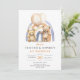 Cute whimsical watercolor teddy bear twins 1st birthday invitation with balloons and a cute boho rainbow. Balloons and rainbows on the back of the invitation. You can customise this invite for girl twins, boy twins, or a boy and a girl. Available in print, as a digital download, or both.