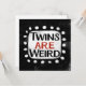 "Twins Are Weird" is a cute text design in black with black and red text, along with a white accent shape and white textured whimsical dots surrounding it.