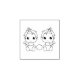 Cute cartoon baby girls in jumpsuits with matching star bibs holding baby rattles. Toy ball is resting between them.