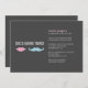 A charming, whimsical baby shower invitation for a soon-to-be mother expecting twins - a boy and a girl. Invitation features a blue moustache and pink lips, with the text "She's having twins!"