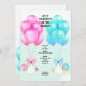 Adorable pink and blue twin baby shower invites for girl and boy twins featuring balloon bouquets.