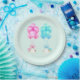 Sweet twins baby shower plates featuring girl and boy twin babies in helmets and blue and pink balloons.